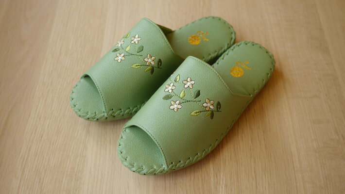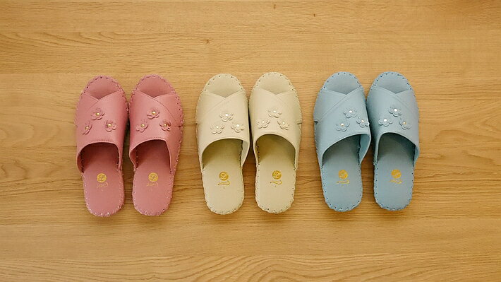 【履いていて楽ちん♪ハンドメイドの手編み製法】レガート三つ花 レディース Mサイズ(約22.5〜23.5cm)Lサイズ(約23.5〜24.5cm) おしゃれ レザー風 滑り止め サンダル風 ルームシューズ